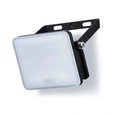 The Stanley 20W LED Frosted Floodlight delivers reliable, energy-efficient lighting in a durable and compact design, perfect for outdoor areas like gardens, patios, and driveways. Made from die-cast aluminium with a frosted polycarbonate diffuser, this floodlight ensures soft, even light distribution, reducing glare while maintaining high performance.With a bright output of 1800 lumens at 6500K, the floodlight provides crisp, daylight-quality illumination, ideal for enhancing outdoor visibility and security. Its 180 beam angle offers wide coverage, while the horizontal and vertical adjustment on the bracket allows for easy positioning to direct light where it's needed most.Designed to last, this floodlight has an impressive 25,000-hour lifespan and is IP65 rated, offering complete protection against dust and water, making it suitable for all weather conditions. Measuring a compact H:100mm W:150mm Proj:55mm, the Stanley 20W LED Frosted Floodlight is easy to install and perfect for smaller spaces where powerful, efficient lighting is required.Choose the Stanley 20W LED Frosted Floodlight for durable, long-lasting, and energy-efficient outdoor lighting that combines functionality with sleek design.