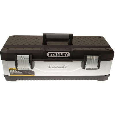 STANLEY Galvanised Toolbox Chest with Heavy Duty Metal Hinge, Portable Tote Tray for Tools and Small Parts, 26 Inch, 1 95 620