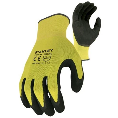 General description Stanley SY890L Waterproof Grip Gloves feature a 13-gauge nylon shell with a fully water-resistant latex coating, providing excellent protection against moisture. The sandy foam latex palm enhances grip for handling various objects, making these gloves ideal for general handling and work in wet conditions. Elasticated cuffs ensure a secure and comfortable fit. Technical specifications Color: Yellow and black Material (back): Breathable knitted fabric Coating: Sandy foam latex palm Size: Large (Size 10) Installation No installation required. Simply put on the gloves for use. Usage Use for handling tools, materials, and objects in wet or dry conditions. Provides a secure grip and protection against moisture. Other information Designed for durability and comfort during extended use.