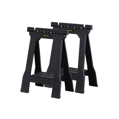 Drainage SuperstoreThis Twin Pack of Stanley Junior Sawhorses features an all-plastic construction with non-slip rubber inserts in the top for added grip when youre working on the project in hand. Non-slip rubber feet are also included to provide further stability and safety.Additionally, these sawhorses will fold flat for easy transportation and storage.Features & Benefits: Stanley Junior Sawhorses - Twin Pack, Non-slip rubber inserts and feet, Folds flat for easy storage and transportation, Twin pack, Provides stability and safety, All-plastic construction. Stanley Junior Sawhorses - Twin Pack