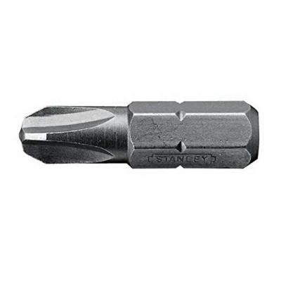 General description These Stanley Phillips Insert Bits are precision machined for the perfect fit, forged for added tip strength, and ground for long life and durability. This set includes three 25 mm Phillips screwdriver bits with a 1/4" drive, designed for professional use and suitable for various industrial, construction, and DIY applications. Technical specifications Tip size: No.2 Phillips Length: 25 mm Drive size: 1/4" Pack quantity: 3 bits Compatibility and accessories Compatible with standard 1/4" screwdriver handles and power tools Suitable for use with various screw types requiring PH2 bits Installation Insert the bit into the screwdriver or power tool's chuck until it clicks into place Usage Use for driving Phillips screws in woodworking, metalworking, and industrial applications Ensure proper fit to prevent cam-out and damage to screws or bits