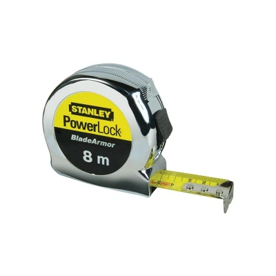 General description The Stanley PowerLock® BladeArmor® Pocket Tape is designed for durability and precision. It features a curved steel blade coated with Mylar®, making it up to 10 times more resistant to abrasion than standard lacquered blades. The first 100mm of the blade is reinforced with BladeArmor® coating to enhance durability and minimize breakage. This model includes metric graduations only. Technical specifications Blade Length: 8m Blade Width: 25mm Accuracy: EC Class II Other information