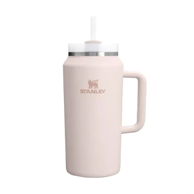 Stanley Quencher H2.0 FlowState Tumbler 1.9L Cold for 15 Hours Iced 60 Water Bottle with Straw, Handle and Lid Dishwasher Safe Travel Mug Drinks Rose Quartz