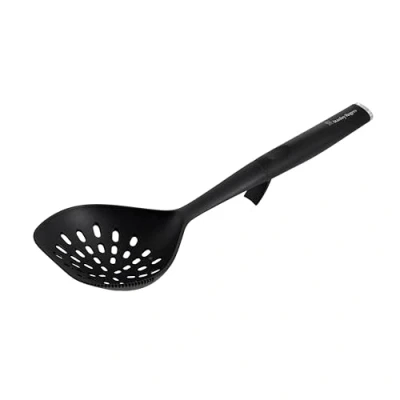 HEAT-RESISTANT CONSTRUCTION: safe for non-stick cookware, this skimmer is designed for straining hot foods without damaging pots and pans, maximum temperature rating 200 degrees Celsius UPLIFT HANDLE DESIGN: innovative handle keeps the head raised from benchtops, reducing mess and keeping your kitchen clean during cooking WIDE PERFORATED HEAD: large head drains liquid quickly while securely lifting pasta, vegetables, or fried foods in your home and kitchen BELLY GRIP HANDLE: ergonomic contoured handle offers comfort and stability, ensuring precise control when cooking or serving MODERN CONTEMPORARY STYLE: satin finish and sleek design pair seamlessly with your kitchen gadgets and utensils in the Contempo collection INCLUDES: 1 xStanley Rogers Contempo Skimmer with Uplift Belly Grip Handle, Heat-Resistant Non-Stick Safe Kitchen Utensil with Wide Perforated Head, Modern Cooking Tool for Straining & Serving, 34x8x5cm, Black, Weight: 0.3968320716 pounds, Manufacturer: Stanley Rogers