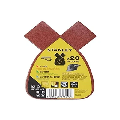 STANLEY STA31029 QZ Quick Fit Sanding Sheets for Black+Decker Mouse, Assorted Grit, Pack of 20