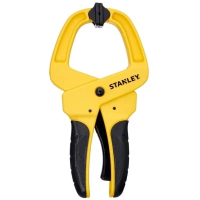 General description The Stanley Quick-Fit Clamp is a versatile one-handed clamping system designed for precise fastening and releasing. It features a soft-grip double-layer handle for comfort, a movable rubber pad for a secure grip, and an adjustable jaw capacity suitable for various tasks. The clamp includes a large release button for easy disengagement, making it ideal for DIY and home improvement projects. Technical specifications Clamp length: 50 mm Jaw depth: 55 mm One-handed operation with release lever system Soft-grip double-layer handles for comfort Movable rubber pads for better grip on irregular or angled objects Large capacity for versatile use Compatibility and accessories Suitable for various materials and objects requiring clamping Compatible with other Stanley clamping tools and accessories Installation Adjust the clamp to the desired width by sliding the jaw Secure the clamp onto the object by tightening the handle Ensure the rubber pads are in contact with the