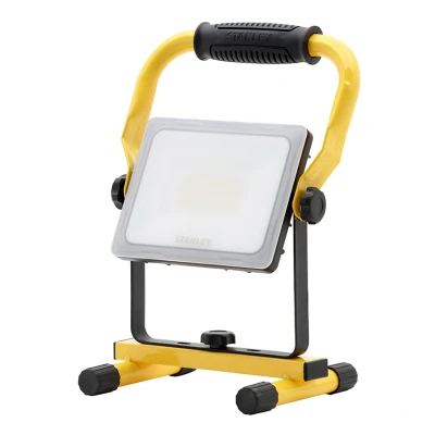 The 240V mains powered Stanley portable work light is a versatile work light that is ideal for trade professionals such as electricians, plumbers, carpenters, fitters and construction workers.Featuring a fully adjustable directional light head which allows the user to illuminate a wide area to ensure your worksite is well-lit and safe.With a light output power of 30W this work light outputs at 2400lm of 4000K cool white coloured light which can be directed to the area required due to the fully adjustable head.This Class I unit is IP44 rated suitable for various work and construction sites and weighs only 1.25kg. It is constructed from a robust and durable powder-coated steel frame and die-cast aluminium body with frosted shatterproof diffusers designed to withstand worksite conditions.The unit comes fitted with a useful carry handle and 1.5-metre H05RN-F 3G 1.5mm power cable.When not in use, this work light can be folded down to a suitable size for portability and storage.