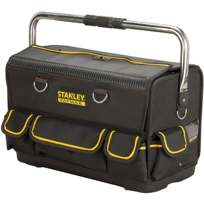 General description The Stanley FatMax® Double Sided Plumbers Bag conveniently opens up to a full workstation. Its double side opening enables separation of materials and tools, making it perfect for plumbers. The bag offers an ideal fit and protection for tools like pipe cutters, pipe benders, and basin wrenches. It features both external and internal pockets for maximum organization, while vertical storage pockets provide quick and easy access to all tools and small parts. The bag is made from durable, anti-moisture material on its sides and has an injected polypropylene bottom to protect against wet and damp surfaces. Technical specifications Dimensions: 520 x 280 x 310 mm Manufacturer Part Number (MPN): STA170719 EAN: 3253561707193 Other information