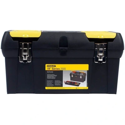 General description This STANLEY® Toolbox is a 50cm (19in) storage solution designed for organizing and transporting your essential tools. Made from tough, durable plastic, it features a robust design with metal latches for added durability and security. The toolbox is ideal for both home and worksite use, providing excellent accessibility to your tools. Technical specifications Outer Dimensions: 48 x 24 x 25 cm Size: 19-Inch Compatibility and accessories 1 removable tote tray for storing small tools 2 lid organiser compartments for small parts and accessories Installation No installation required Usage Ideal for transporting and storing multiple tools Can be locked with a small padlock for extra safety Other information Equipped with a soft-grip carry handle for easy transportation Includes two metal catches for secure closure