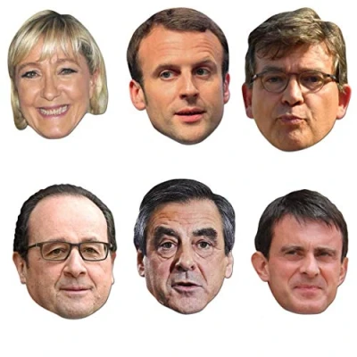 Star Cutouts Ltd SMP386 French Politicans 6 Pack Le Pen Macron MontebOurg Fillon Hollande 1 x Valls Masks Includes Tabs and Elastics, Multicolour