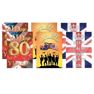 Star Cutouts RD083 VJ Day 80 Year Celebration Posters Mixed 6 Pack Cardboard Cut Out Height 44.00cm Ideal for Parties & Decorations