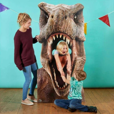 You don’t need to be a side character in a Jurassic World movie to end up in the jaws of a Tyrannosaurus. You just need this Jurassic World T-Rex Stand-In Cardboard Cutout! Officially licensed Jurassic World merchandise, this cutout features the T-Rex with a stand-in hole amidst its jaws. Just put your face and arms through to join the list a characters to have ended up as dino-snacks. This Jurassic World T-Rex Cutout is great for parties, fan caves, and much more. Order yours now!