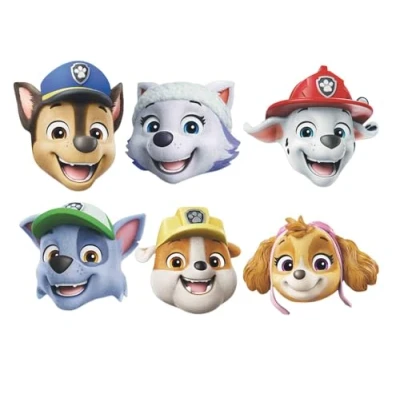 Star Cutouts SMP463 Paw Patrol Chase, Rubble, Marshall, Everest, Skye & Rocky Multipack Masks 6 Pack Cardboard Cut Out Height 30cm