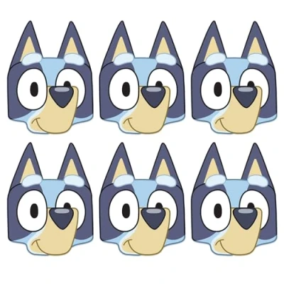 STAR CUTOUTS SMP503 Six Pack Cardboard Face Masks Bluey 6PCS Ideal for Theme, Parties, Birthdays & Room Decorations, Baby Showers Events