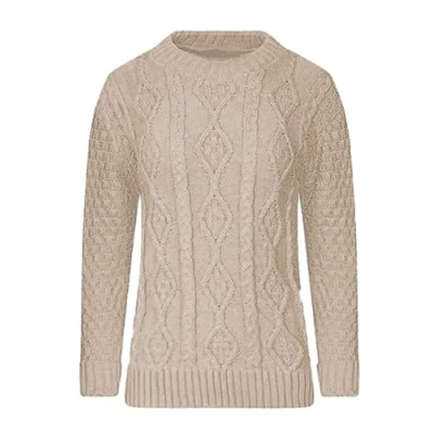 STAR FASHION Cable Knitted Crew Neck Jumper Long Sleeve Womens Aran Knit Jumpers Sweater Pullover Top Stone SM