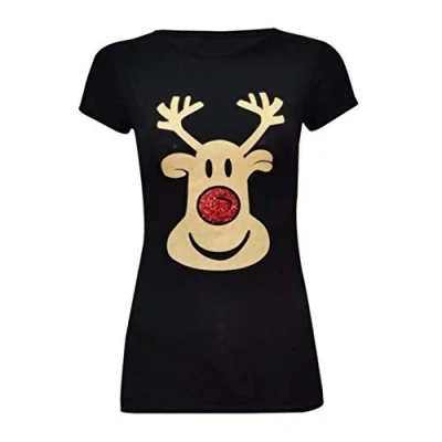 New Women Christmas T-Shirt Top with Reindeer Rudolph Santa Red Nose Glitter Print Classic Fit, Smooth Stretchy & Comfortable to Wear An Ideal Christmas Present for You & Your Loved Ones Made From Super Soft High Quality Fabric Short Sleeves With Scooped Round Neck. Easy to Handle and Machine Washable Ideal For Casual, Party, Festive, Holidays or Going Out. Fashionable, and Gives An Attractive Look. Makes A Perfect Combination With Pants, Jeans and Christmas Leggings. Authentic and Original Only from STAR FASHION. Available in multiple colors, prints, sizes(8-10 12-14 16-18 20-22 24-26)