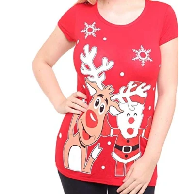 New Women Christmas T-Shirt Top with Reindeer Rudolph Santa Red Nose Glitter Print Classic Fit, Smooth Stretchy & Comfortable to Wear An Ideal Christmas Present for You & Your Loved Ones Made From Super Soft High Quality Fabric Short Sleeves With Scooped Round Neck. Easy to Handle and Machine Washable Ideal For Casual, Party, Festive, Holidays or Going Out. Fashionable, and Gives An Attractive Look. Makes A Perfect Combination With Pants, Jeans and Christmas Leggings. Authentic and Original Only from STAR FASHION. Available in multiple colors, prints, sizes(8-10 12-14 16-18 20-22 24-26)
