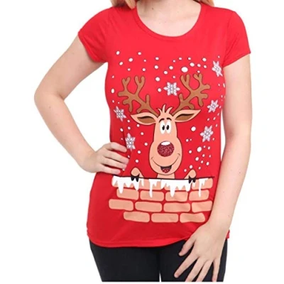 New Women Christmas T-Shirt Top with Reindeer Rudolph Santa Red Nose Glitter Print Classic Fit, Smooth Stretchy & Comfortable to Wear An Ideal Christmas Present for You & Your Loved Ones Made From Super Soft High Quality Fabric Short Sleeves With Scooped Round Neck. Easy to Handle and Machine Washable Ideal For Casual, Party, Festive, Holidays or Going Out. Fashionable, and Gives An Attractive Look. Makes A Perfect Combination With Pants, Jeans and Christmas Leggings. Authentic and Original Only from STAR FASHION. Available in multiple colors, prints, sizes(8-10 12-14 16-18 20-22 24-26)