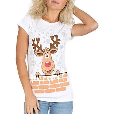 New Women Christmas T-Shirt Top with Reindeer Rudolph Santa Red Nose Glitter Print Classic Fit, Smooth Stretchy & Comfortable to Wear An Ideal Christmas Present for You & Your Loved Ones Made From Super Soft High Quality Fabric Short Sleeves With Scooped Round Neck. Easy to Handle and Machine Washable Ideal For Casual, Party, Festive, Holidays or Going Out. Fashionable, and Gives An Attractive Look. Makes A Perfect Combination With Pants, Jeans and Christmas Leggings. Authentic and Original Only from STAR FASHION. Available in multiple colors, prints, sizes(8-10 12-14 16-18 20-22 24-26)