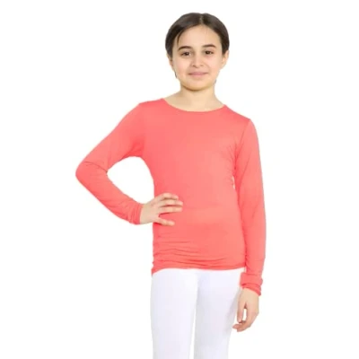 STAR FASHION Girls Long Sleeve Round Neck Basic Top Kids School Uniform Crew T Shirt Tee Coral 13 Years