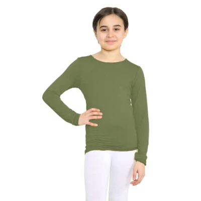 STAR FASHION Girls Long Sleeve Round Neck Basic Top Kids School Uniform Crew T Shirt Tee Khaki 13 Years