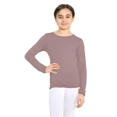 STAR FASHION Girls Long Sleeve Round Neck Basic Top Kids School Uniform Crew T Shirt Tee Mocha 11 to 12 Years