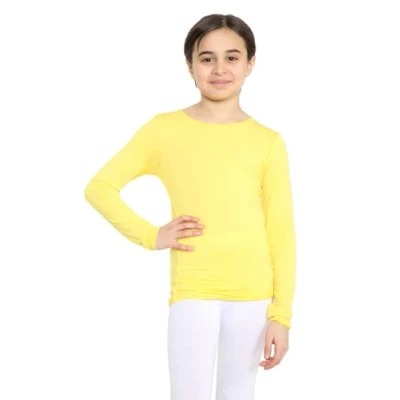 STAR FASHION Girls Long Sleeve Round Neck Basic Top Kids School Uniform Crew T Shirt Tee Yellow 13 Years