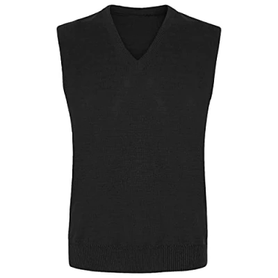 STAR FASHION Kids Boys Girls Sleeveless V Neck Knitted School Uniform Unisex Tank Top Casual Waistcoat Warm Winter Knitwear Pullover Vest Jumper Sizes 24 44 Black