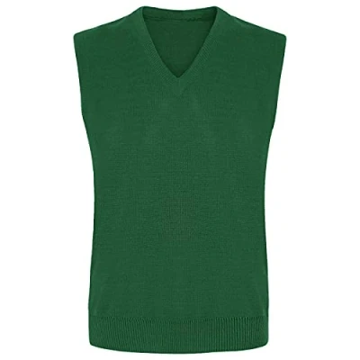 STAR FASHION Kids Boys Girls Sleeveless V Neck Knitted School Uniform Unisex Tank Top Casual Waistcoat Warm Winter Knitwear Pullover Vest Jumper Sizes 24 44 Bottle Green
