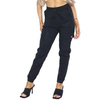 STAR FASHION Ladies 2 Pockets Cargo Army Plain Combat Casual Trousers Womens Elasticated Chino Pocket Pants Work Wear Black 12 to 14