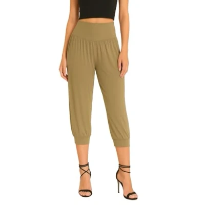 Approximate length: 75cm. Made from a soft and flexible 95% Viscose and 5% Elastane blend, providing excellent breathability and all-day wearability. Designed with a wide elastic waistband and gathered leg cuffs These Ali Baba harem trousers feature a 3/4 cropped length and a loose, baggy silhouette, ideal for casual wear, holidays, yoga, or lounging. These trousers are perfect for warmer weather that pairs well with crop tops, tunics, or summer vests.