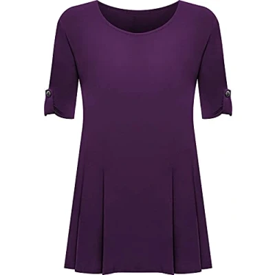 STAR FASHION Ladies Crepe Top Zip up V Neck Curved Hem Half Rolled Cuffed Sleeve Plus Size Tunic Asymmetrical Shirts for Woman (Purple)