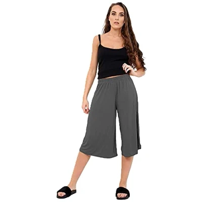 STAR FASHION Ladies Culottes Palazzo Shorts Wide Leg Flared Elasticated Stretchy Loose Short Trousers Pants Casual Womens 3/4 Length Plain 8 26 Dark Grey