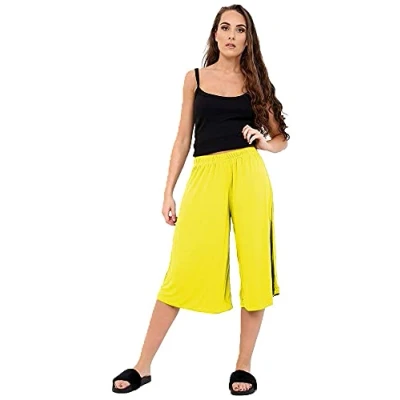 STAR FASHION Ladies Culottes Palazzo Shorts Wide Leg Flared Elasticated Stretchy Loose Short Trousers Pants Casual Womens 3/4 Length Plain 8 26 Yellow