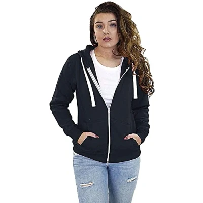 STAR FASHION Ladies Hoodie Zip Up Women's Plain Sweatshirt Fleece Full Zipper Hooded Long Sleeve Jacket Zipped Top Size UK Small XL Navy
