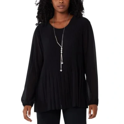 STAR FASHION Ladies Italian Pleated Necklace Top Lined Chiffon Front Round Neck Long Sleeve Blouse with Pendant One Size UK 8 to 16 Black