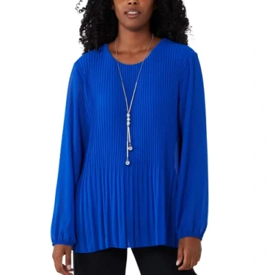 STAR FASHION Ladies Italian Pleated Necklace Top Lined Chiffon Front Round Neck Long Sleeve Blouse with Pendant One Size UK 8 to 16 Royal Blue