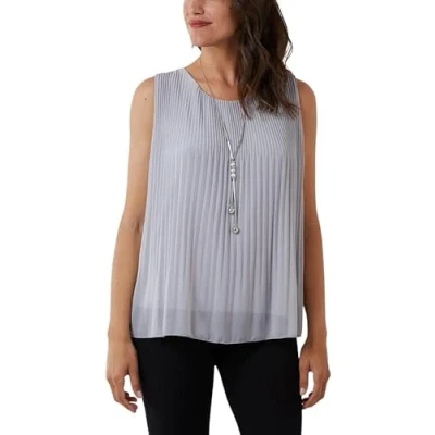 STAR FASHION Ladies Italian Pleated Necklace Top Lined Chiffon Front Round Neck Sleeveless Blouse with Pendant One Size UK 8 to 16 Grey