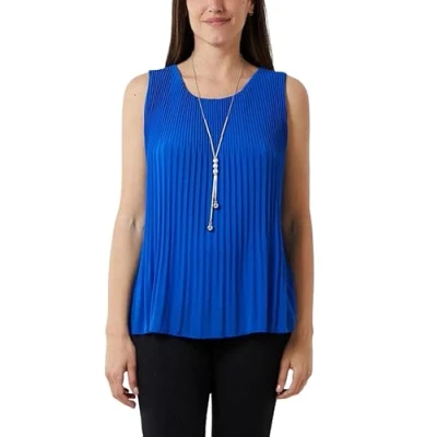 STAR FASHION Ladies Italian Pleated Necklace Top Lined Chiffon Front Round Neck Sleeveless Blouse with Pendant One Size UK 8 to 16 Royal Blue