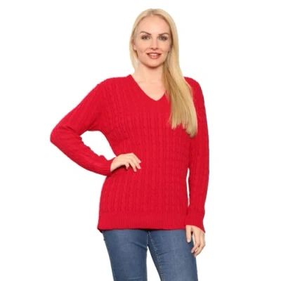 STAR FASHION Ladies Long Sleeve All Over Cable Soft Knitted Jumper Womens V Neck Winter Wear Sweater Casual Top UK Size Red 16 to 18