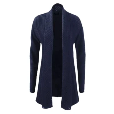 STAR FASHION Ladies Long Sleeve Knitted Waterfall Cardigan Plus Size Womens Open Front Top with Pockets Navy XL