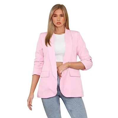 Stylish and trendy: Our STAR FASHION Ladies Longline Duster Coat Blazer is a stylish and trendy outerwear piece that adds a touch of sophistication to any outfit. Frill ruffle 3/4 rouge sleeves: The frill ruffle detail on the 3/4 sleeves adds a feminine and fashionable touch to this blazer. It creates a unique and eye-catching look. Versatile and chic: This longline duster coat blazer can be dressed up or down, making it a versatile addition to your wardrobe. It pairs well with dresses, skirts, or jeans for different occasions. Italian blazer design: The Italian blazer design of this coat adds elegance and sophistication. It enhances your overall look and brings a touch of European fashion to your ensemble. High-quality construction: Made with quality materials, this blazer is crafted to provide durability and long-lasting wear. It's a reliable and stylish choice for any fashion-forward woman.