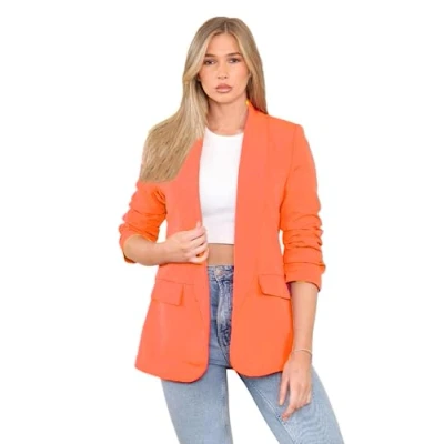 Stylish and trendy: Our STAR FASHION Ladies Longline Duster Coat Blazer is a stylish and trendy outerwear piece that adds a touch of sophistication to any outfit. Frill ruffle 3/4 rouge sleeves: The frill ruffle detail on the 3/4 sleeves adds a feminine and fashionable touch to this blazer. It creates a unique and eye-catching look. Versatile and chic: This longline duster coat blazer can be dressed up or down, making it a versatile addition to your wardrobe. It pairs well with dresses, skirts, or jeans for different occasions. Italian blazer design: The Italian blazer design of this coat adds elegance and sophistication. It enhances your overall look and brings a touch of European fashion to your ensemble. High-quality construction: Made with quality materials, this blazer is crafted to provide durability and long-lasting wear. It's a reliable and stylish choice for any fashion-forward woman.