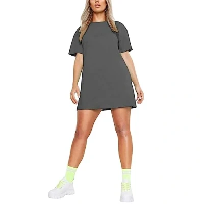 STAR FASHION Ladies Longline T Shirt Plain Short Sleeve Oversized Baggy Tunic Mini PJ Dress Charcoal 8 16 Regular