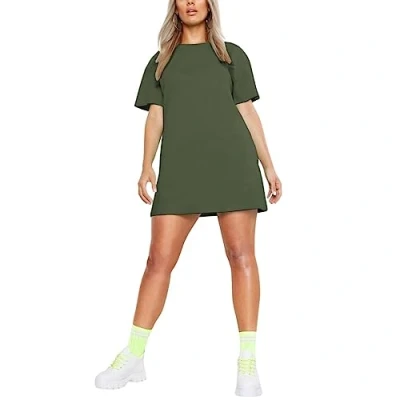STAR FASHION Ladies Longline T Shirt Plain Short Sleeve Oversized Baggy Tunic Mini PJ Dress Khaki 8 16 Regular