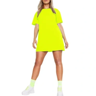 STAR FASHION Ladies Longline T Shirt Plain Short Sleeve Oversized Baggy Tunic Mini PJ Dress Neon Yellow 16 26 Plus