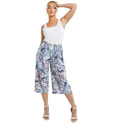 STAR FASHION Ladies Printed Palazzo Shorts Wide Leg Flared Elasticated Stretchy Loose Short Trousers Pants Floral Blue 009 24 26