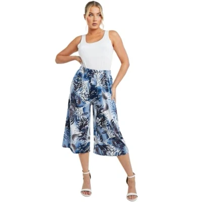 STAR FASHION Ladies Printed Palazzo Shorts Wide Leg Flared Elasticated Stretchy Loose Short Trousers Pants Jelly Fish Blue 008 20 22