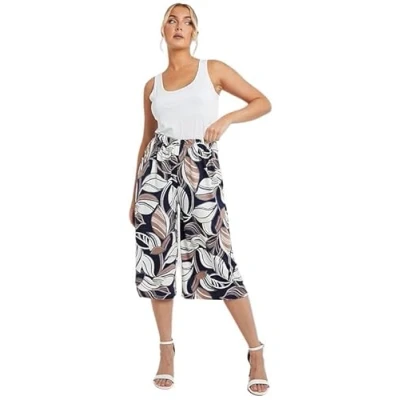 STAR FASHION Ladies Printed Palazzo Shorts Wide Leg Flared Elasticated Stretchy Loose Short Trousers Pants Leafs Navy 004 24 26