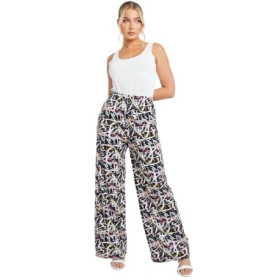 Authentic and Original Design: This stunning pair of palazzo trousers is a creation of STAR FASHION, ensuring authenticity and originality. You can rely on the quality and style of the brand, and enjoy a unique addition to your wardrobe. Comfortable and Stretchy Material: Made from a soft and stretchy blend of 95% viscose and 5% elastane, these trousers provide ultimate comfort and flexibility. The material feels gentle on your skin, making these trousers perfect for everyday wear. Full Length Coverage: With a approximate length of 104cm, these palazzo trousers provide full-length coverage, making them a great option for cooler weather or modest dressing. The loose and relaxed fit allows for comfortable movement throughout the day. Elasticated Waistline: The elasticated waistline ensures a perfect fit for all body types, providing both comfort and ease of wear. You won't have to worry about any discomfort or tightness around your waistline, as these trousers will adapt to your body shape. Ideal for Casual Daywear: These palazzo trousers boast a relaxed wide-leg fit, making them ideal for casual daywear. Whether you're running errands or meeting up with friends, you can pair them with a simple top or blouse for a chic yet effortless look. Update your wardrobe this season with this stunning addition!